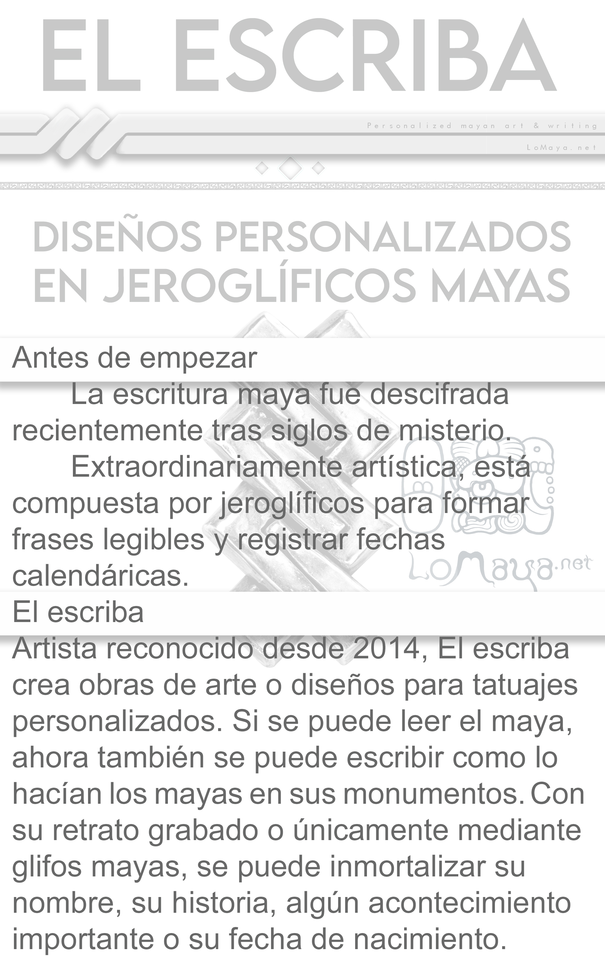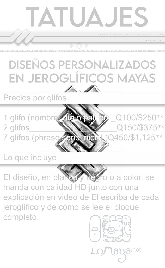 El escriba talla y graba tu obra personalizada en maya! Con tu retrato (a partir de una foto), , tu nombre, tu tocado astrológico, tu fecha de nacimiento (en diferentes calendarios mayas… son más de 17!), árbol genealógico y biografía… todo escrito en jeroglíficos maya