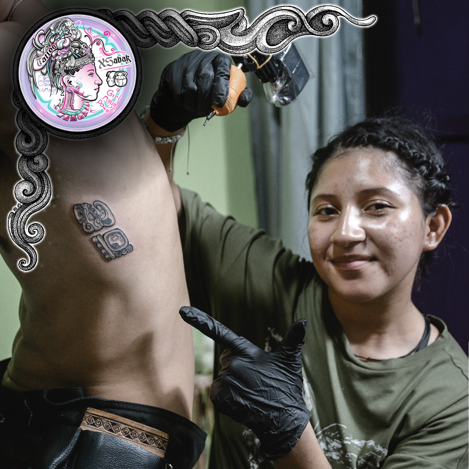 Bienvenidos en el corazón del mundo maya. En la isla de Flores, antiguamente Noh Petén, el café Cool Beans no solo cuenta con un entorno selvático sino también con una galería de arte jeroglífico maya y un estudio de tatuaje de la artista Mishell XSabak!